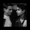 Description: Animated image of Jim kissing Plato on the temple, from a screen test for "Rebel Without a Cause"