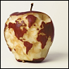 Description: The continents of the world, nibbled out of an apple